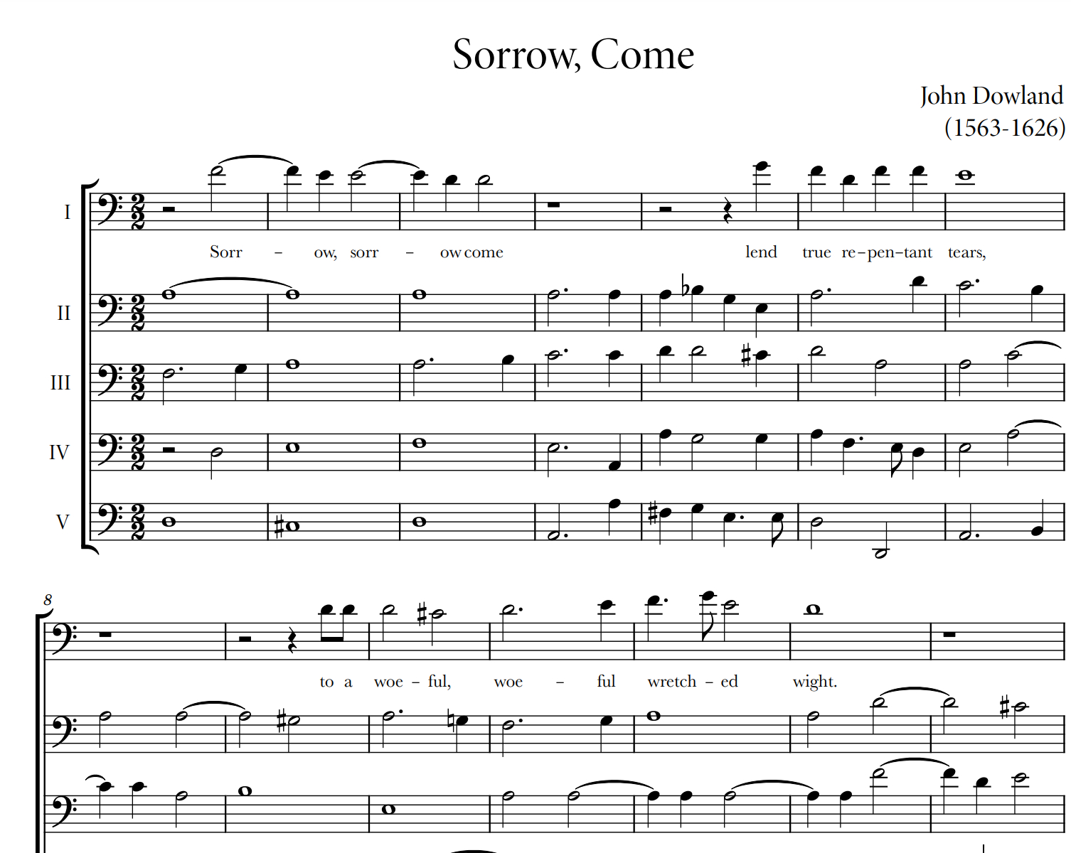 An unbelievably mournful lament with a beautiful text and expressive word-painting. Every part has something interesting to do, with breathless syncopations, call/answer rhythms and clashing harmonies, but not technically difficult for the intermediate player.